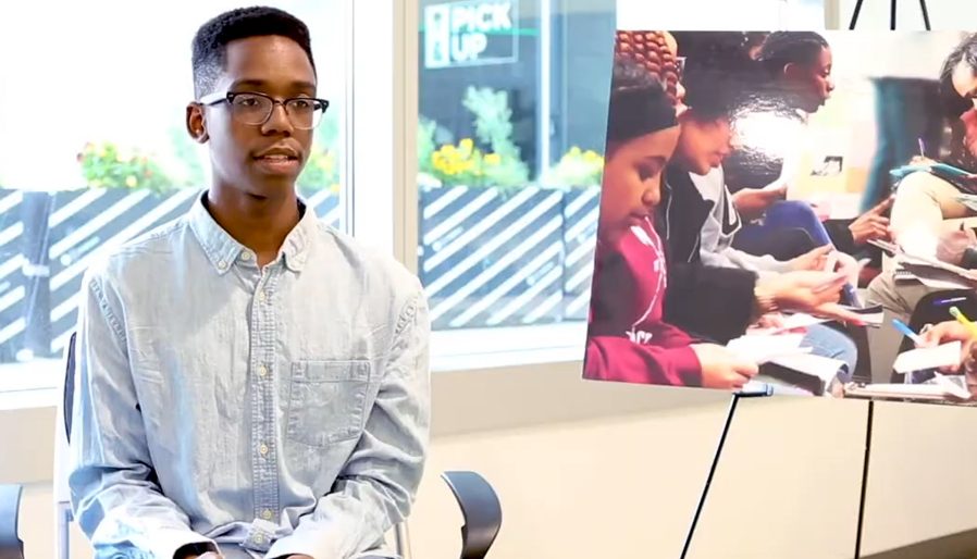 Read MoreWatch One World students Caden (left) and Nyla (center), and their mothers, talk about how the program has improved their writing and changed their lives. Then hear why past program participant Ben Acquah has come back every year for the last five years to mentor younger students at the One World Academy.